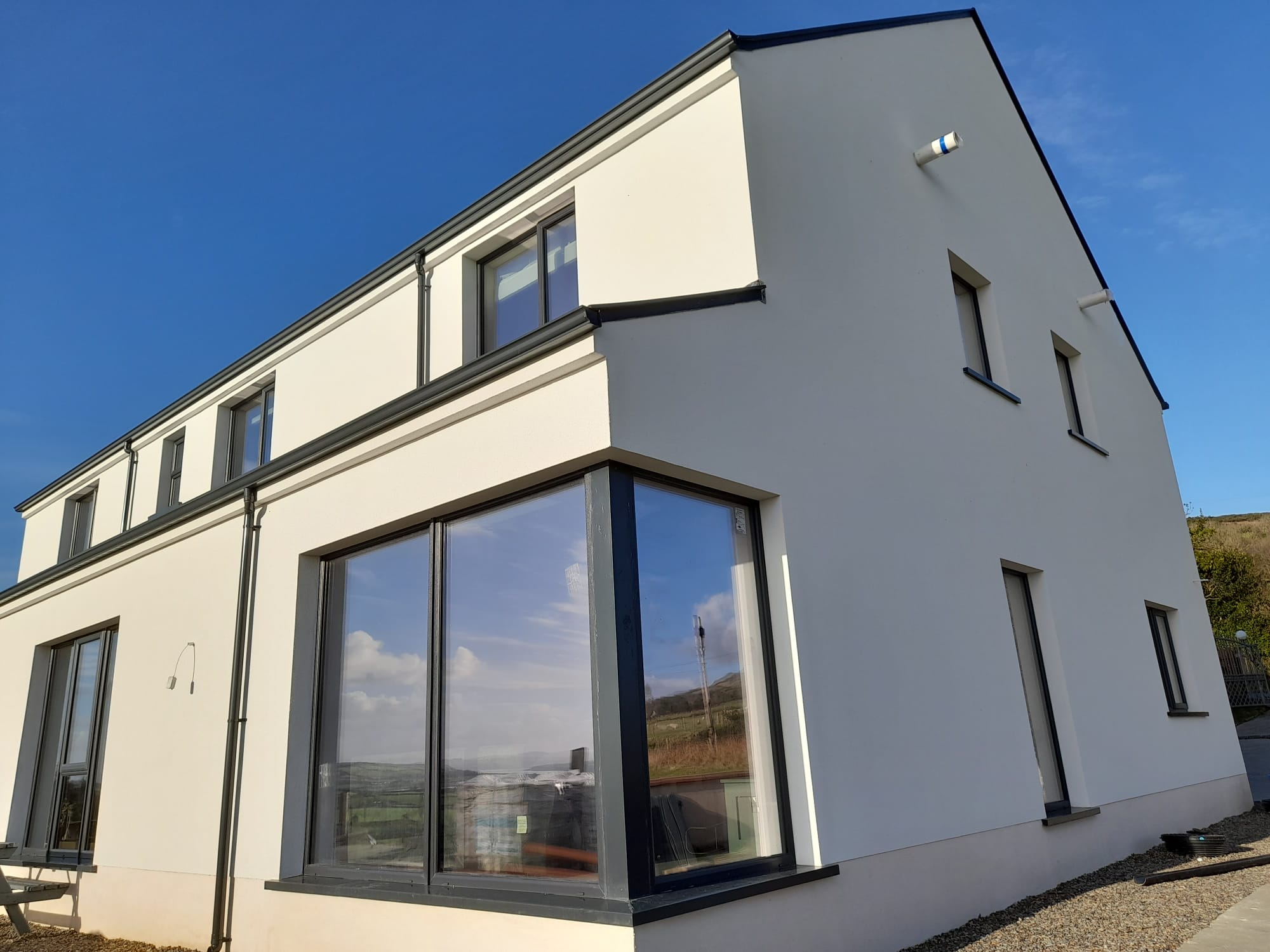 The property is located in Burnfoot, Co. Donegal, a region that has been adversely affected by the mica crisis. In response to this our client contacted us for the supply & install of our rapid build, fully certified and complete low energy building system for his rebuild which was the perfect solution.